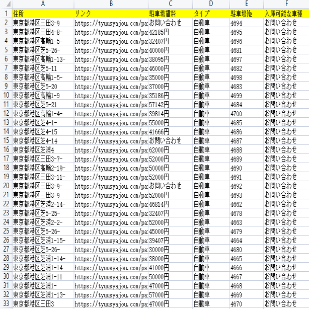 月極駐車場!駐車場.jpから駐車場の情報をスクレイピングする