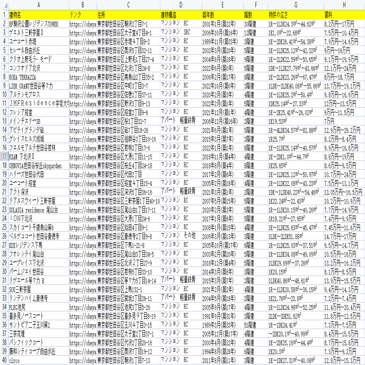 セルフ内見型賃貸サイト!OHEYAGOから物件の情報をスクレイピング
