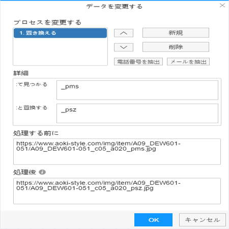 品番、商品の画像などの詳細情報は詳細ページに付いていますから、ソフトウェアの「詳細ページに行く」機能を利用して、データを抽出します。