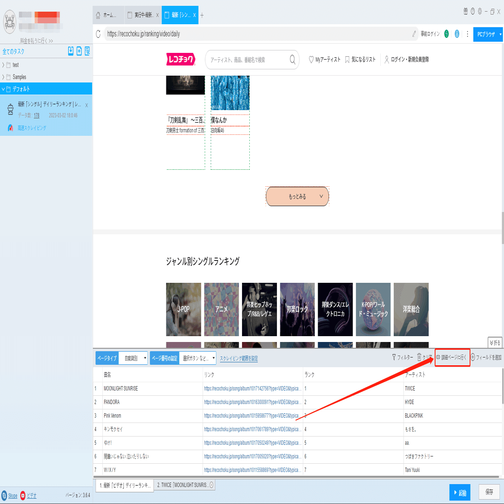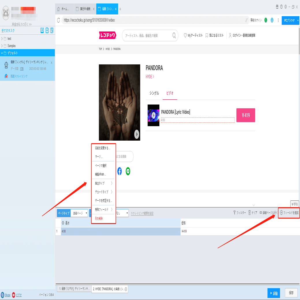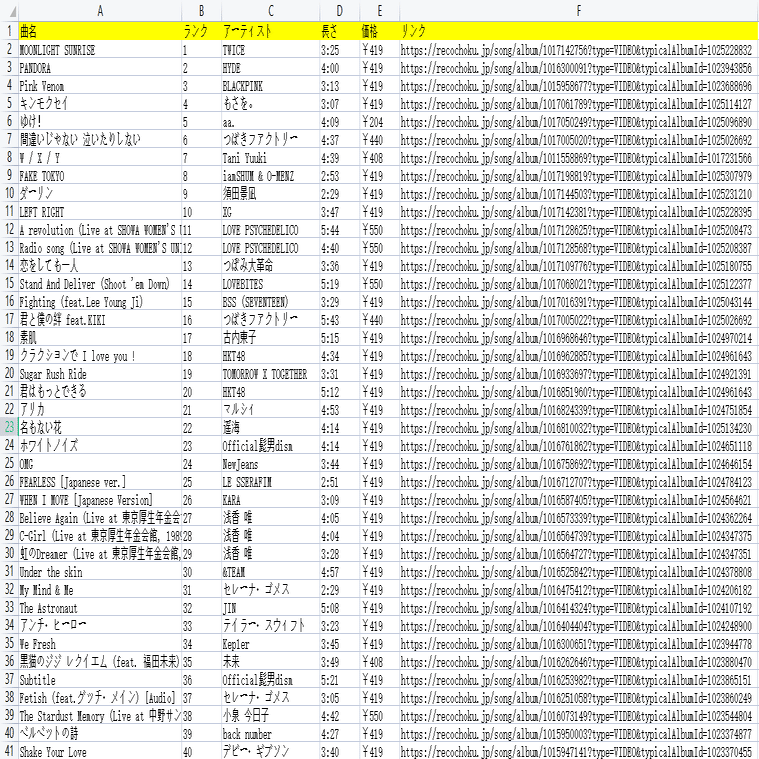 音楽配信サイト!レコチョクからビデオの情報をスクレイピング
