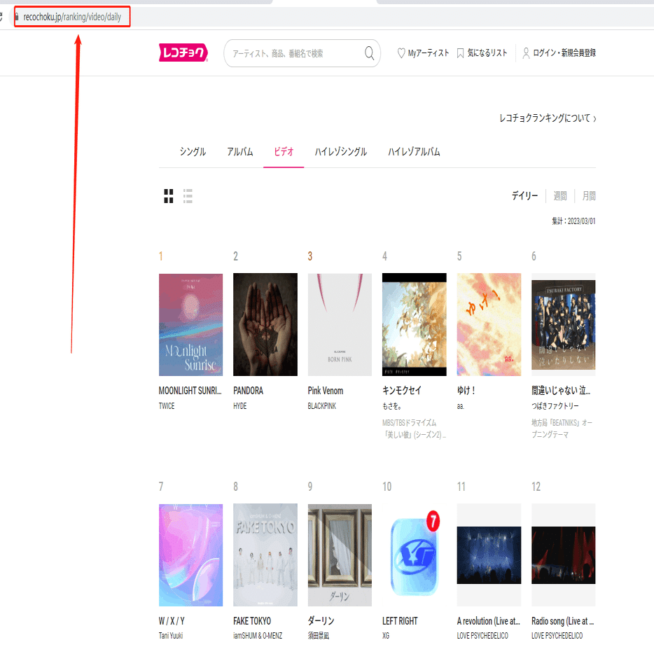 今回はビデオランキング一覧ページを例として、スクレイピング方法を紹介します。まず、URLをコピーしてください。