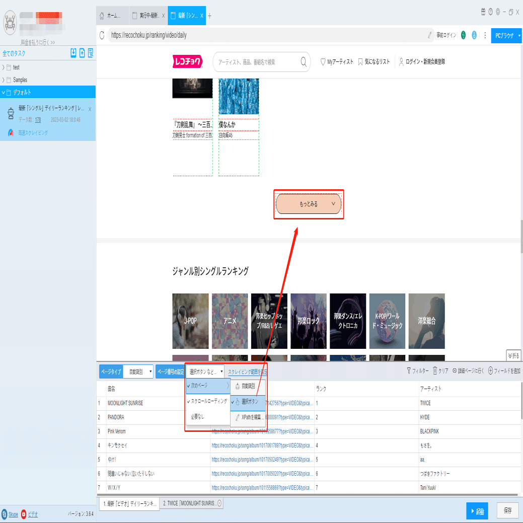 ScrapeStormは自動的にリスト要素とページボタンを識別できます。もし識別誤差が発生する時、手動でページボタンを選択してください。下記のチュートリアルも参照してください。