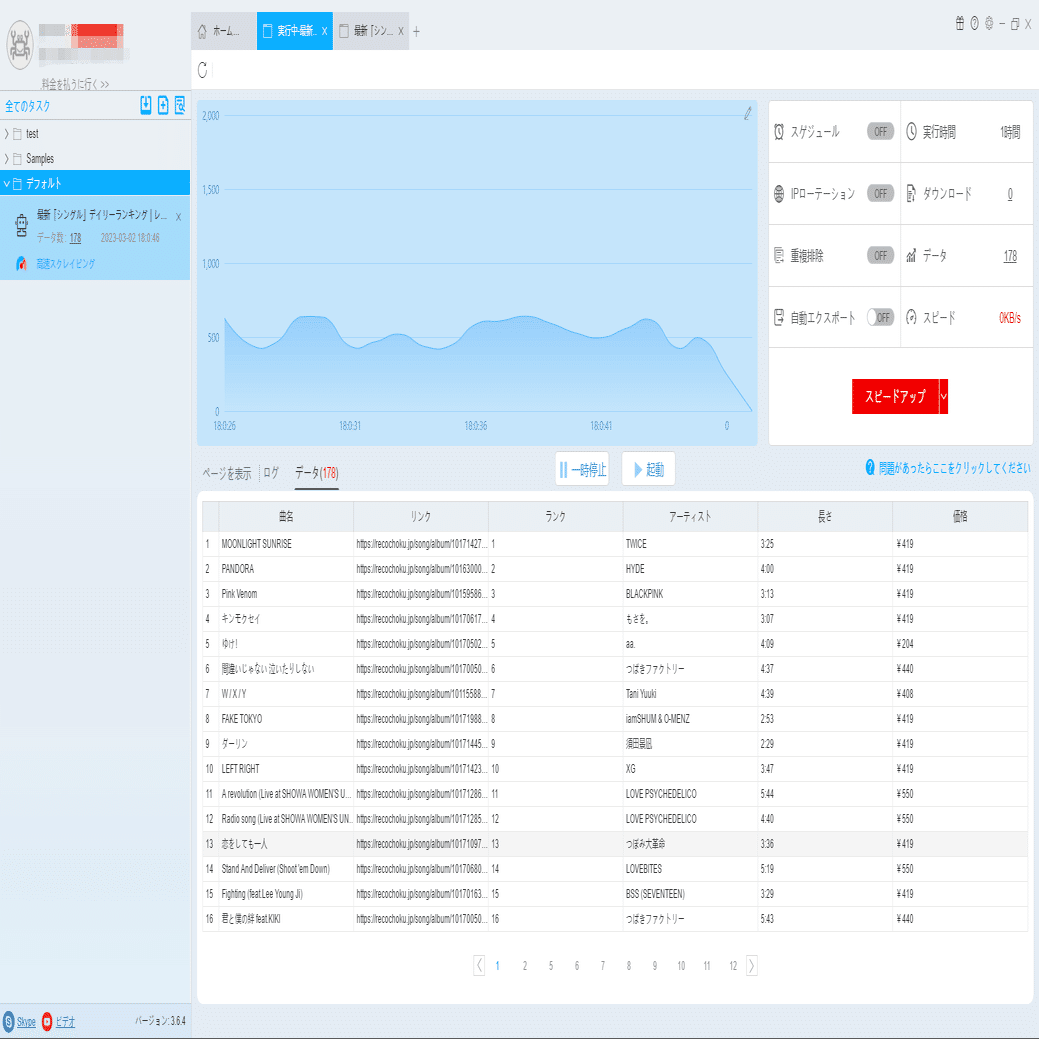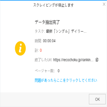 (2)しばらくすると、データがスクレイピングされる。
