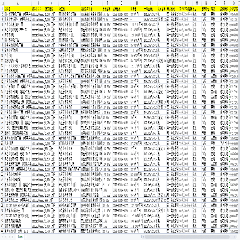 不動産!住宅情報館から土地の情報をスクレイピングする