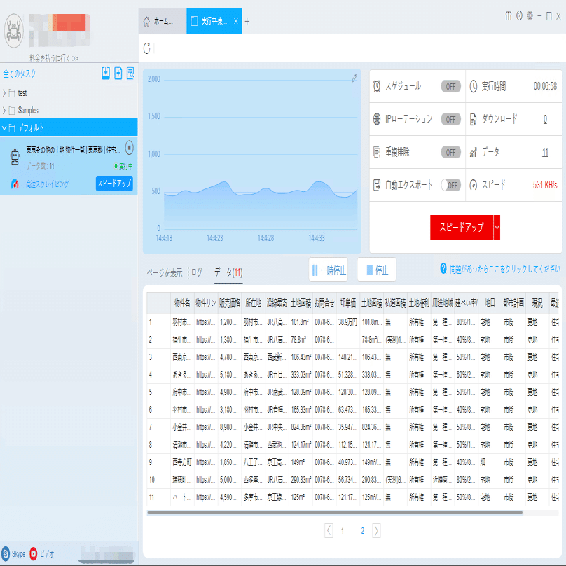 必要に応じて、スケジュール、アンチブロック、自動エクスポート、写真のダウンロード、スピードブーストを設定できます。サーバーに負荷しないように、遅延時間を設定してください。5秒以上を推薦します。スクレイピングタスクを配置する方法については、下記のチュートリアルをご参照ください。