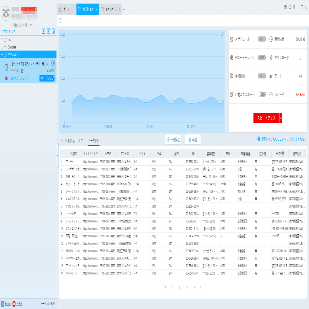 必要に応じて、スケジュール、アンチブロック、自動エクスポート、写真のダウンロード、スピードブーストを設定できます。サーバーに負荷しないように、遅延時間を設定してください。5秒以上を推薦します。スクレイピングタスクを配置する方法については、下記のチュートリアルをご参照ください。