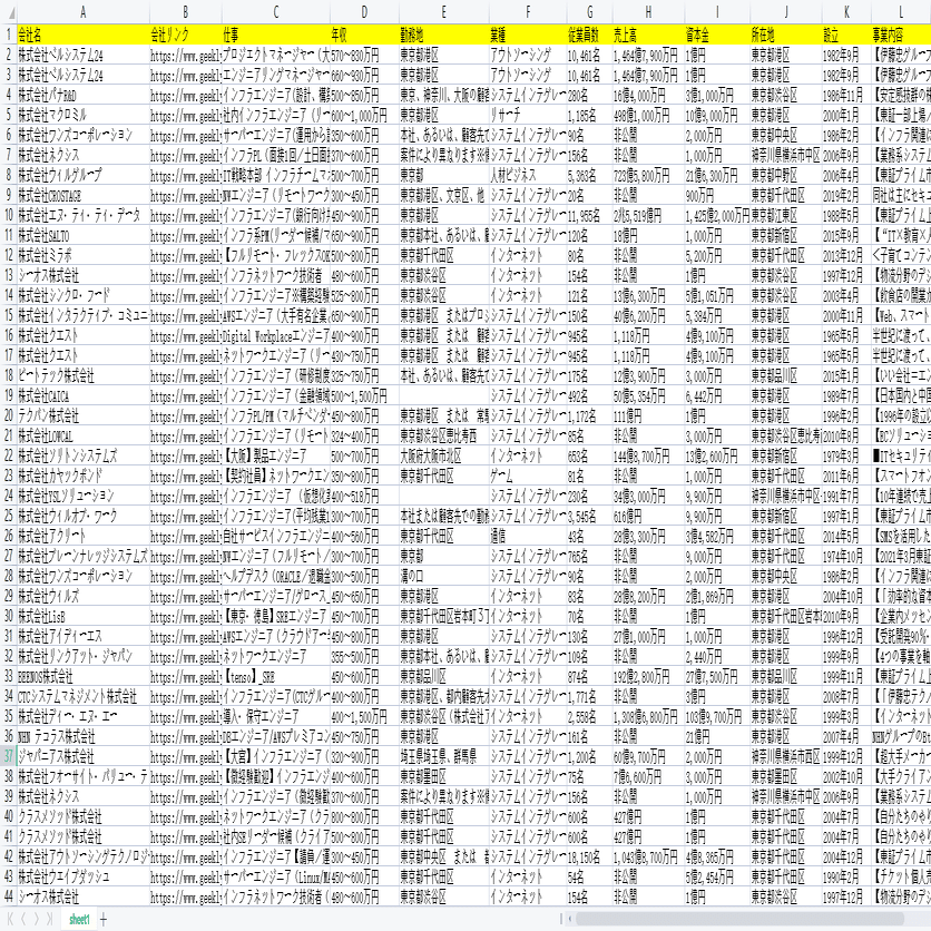 IT業界!ギークリー(Geekly)から会社の情報をスクレイピング