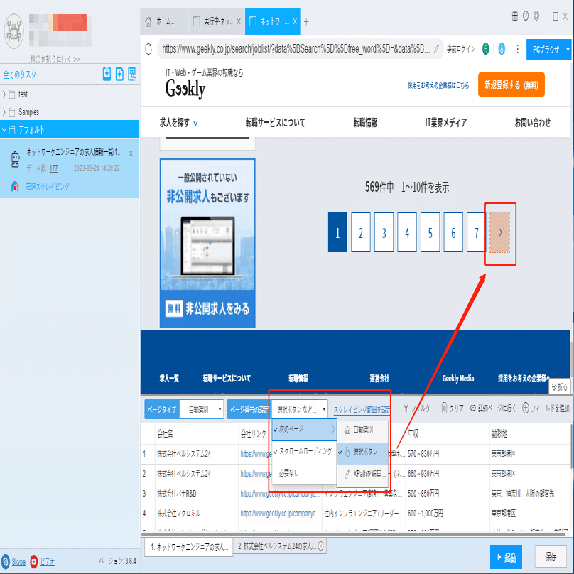 ScrapeStormは自動的にリスト要素とページボタンを識別できます。もし識別誤差が発生する時、手動でページボタンを選択してください。下記のチュートリアルも参照してください。