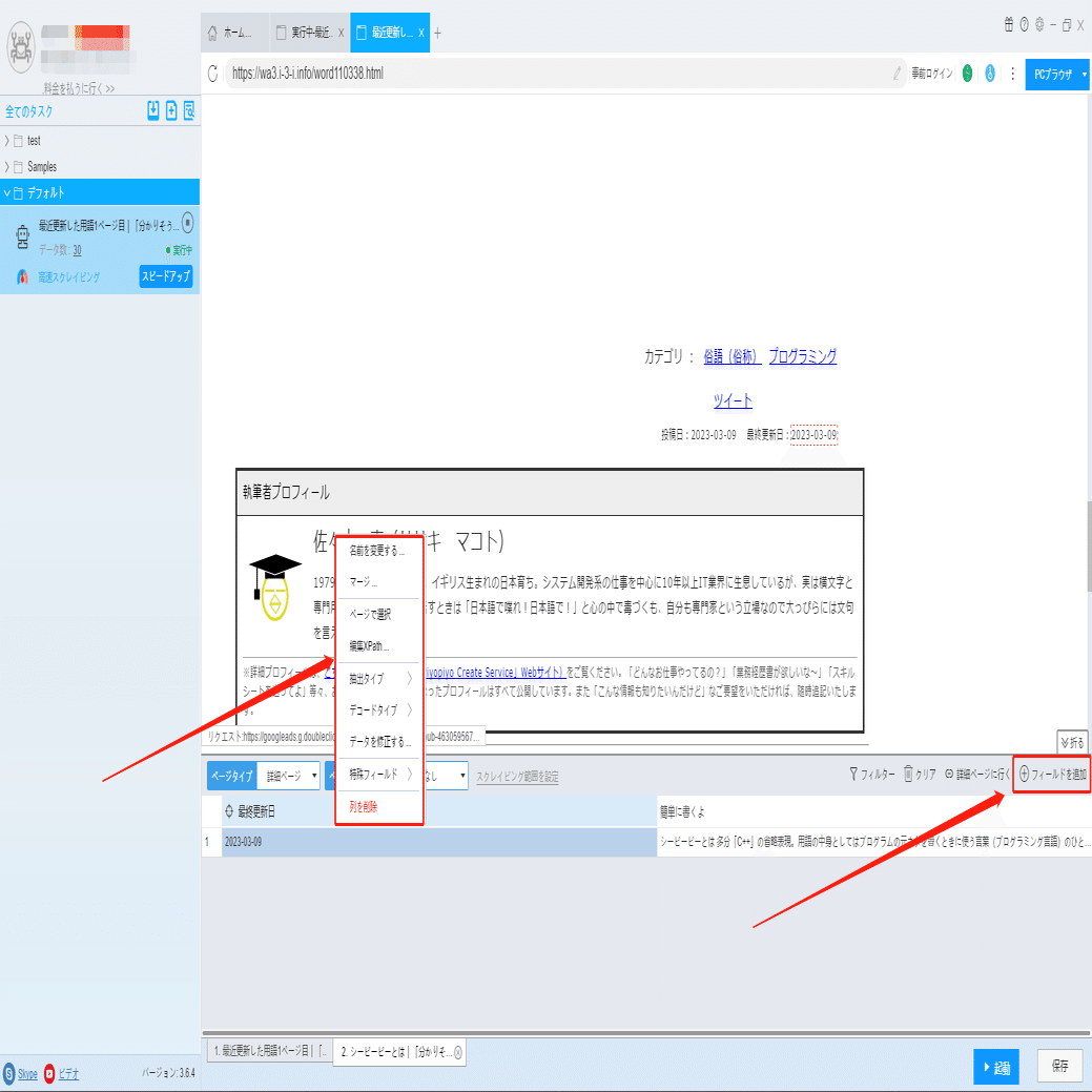 「フィールドを追加」ボタンをクリックして、画面に必要な要素を選択、データが自動的に抽出されます。また、必要に応じてフィールドの名前の変更または削除、結合できます。
