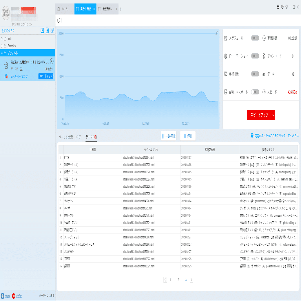 ソフトウェアは数多くの機能を提供します。必要に応じて、スケジュール、アンチブロック、自動エクスポート、画像のダウンロード、スピードブーストを設定できます。サーバーに負荷しないように、遅延時間を設定してください。5秒以上を推薦します。