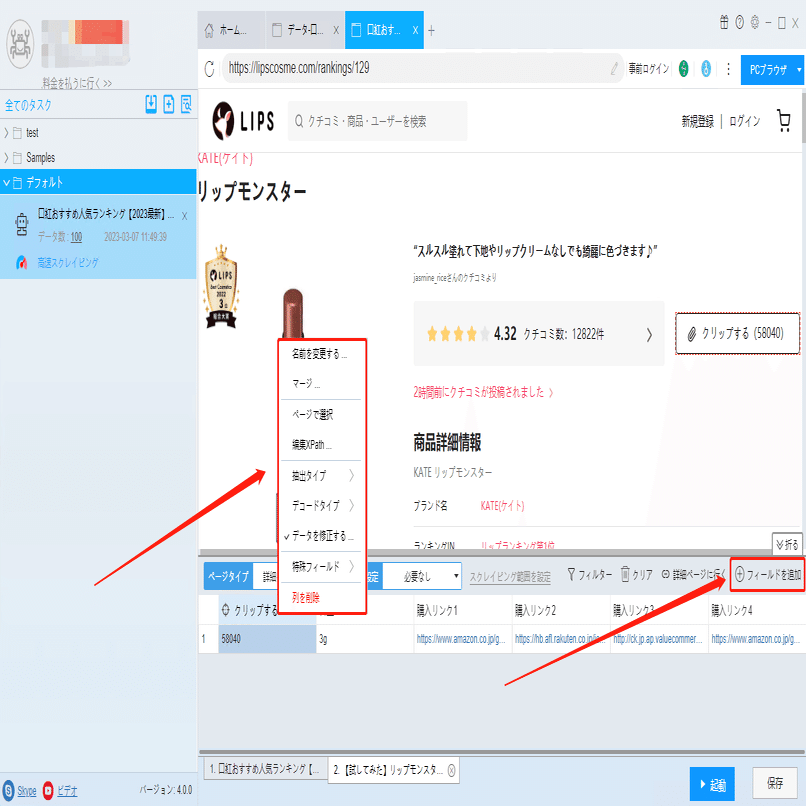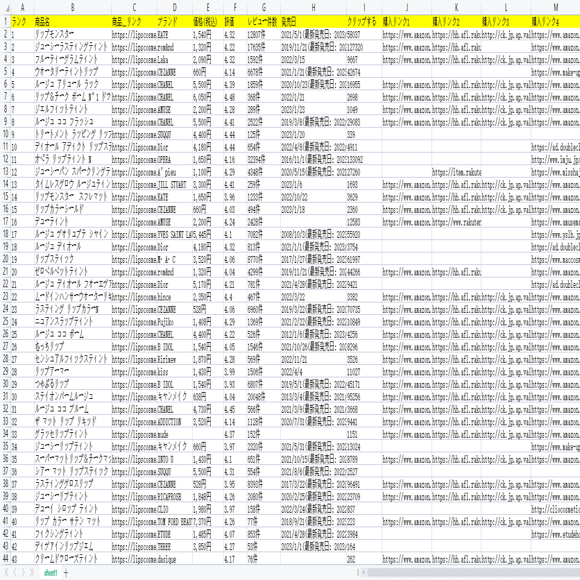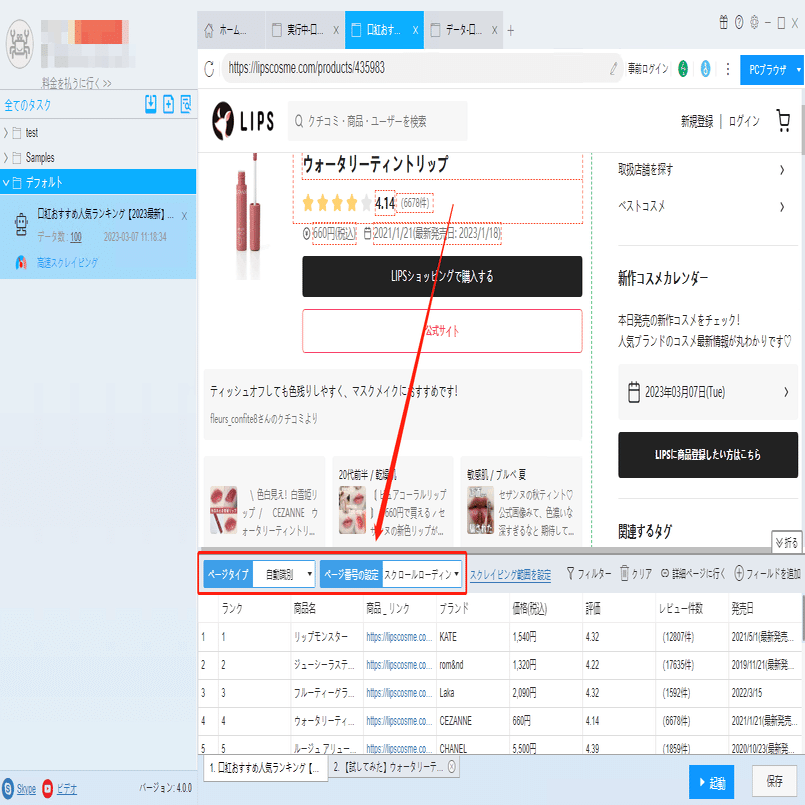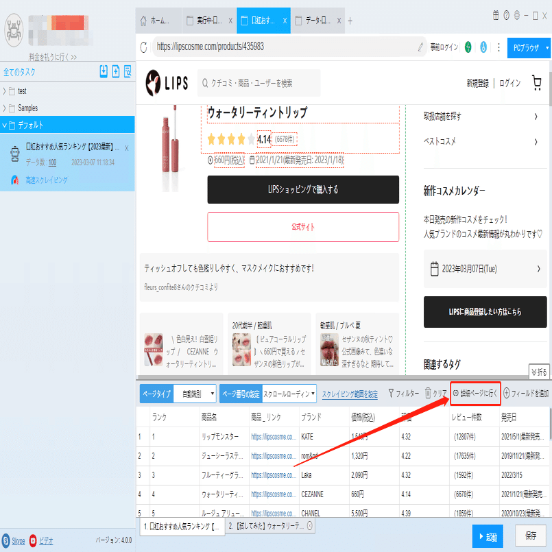 コスメ・美容!LIPS(リップス)から商品の情報をスクレイピング