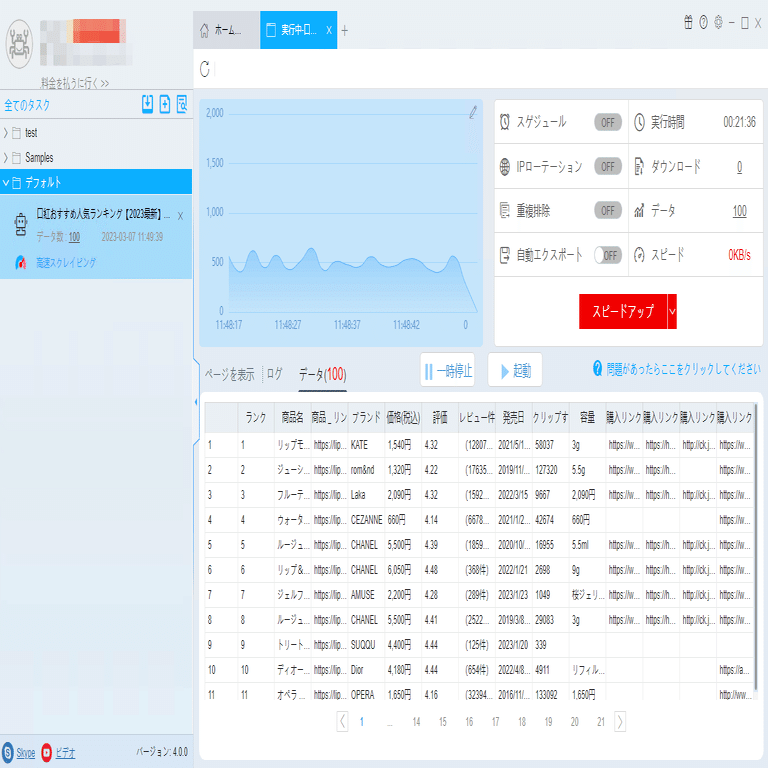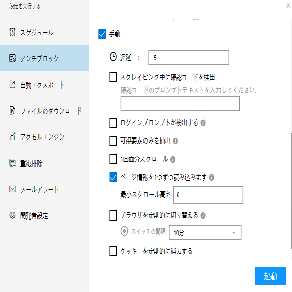 必要に応じて、スケジュール、アンチブロック、自動エクスポート、写真のダウンロード、スピードブーストを設定できます。サーバーに負荷しないように、遅延時間を設定してください。5秒以上を推薦します。スクレイピングタスクを配置する方法については、下記のチュートリアルをご参照ください。