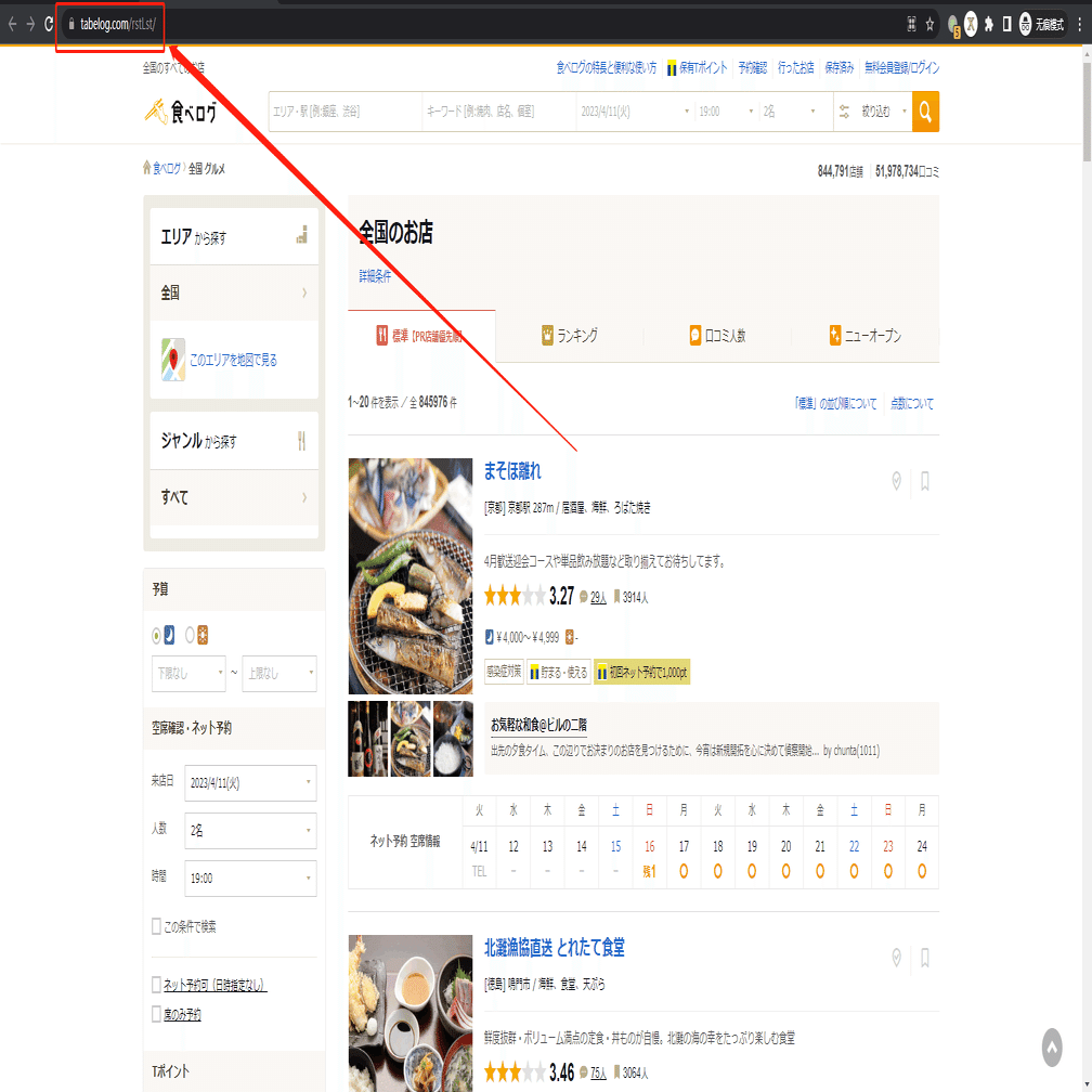 今回は日本全国のお店一覧ページを例として、スクレイピング方法を紹介します。まず、URLをコピーしてください。