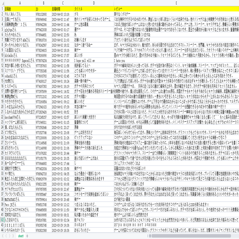 スマホゲーム!エスピーゲームからレビューをスクレイピングする