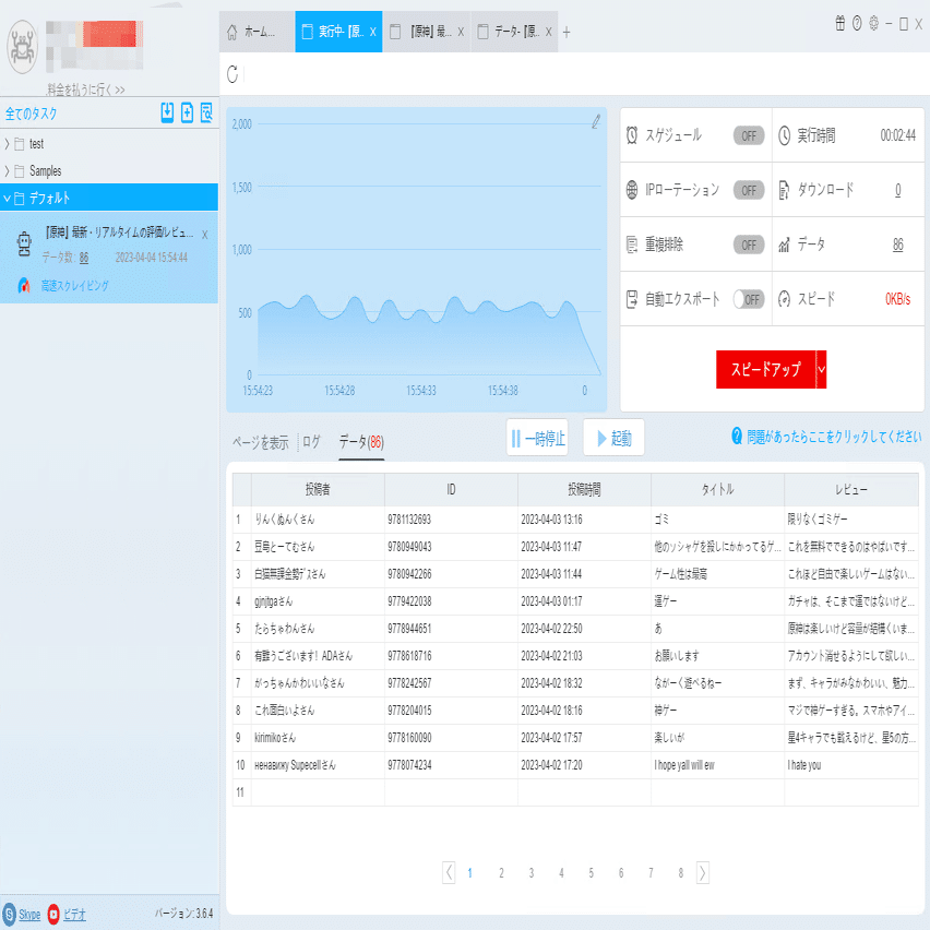 必要に応じて、スケジュール、アンチブロック、自動エクスポート、写真のダウンロード、スピードブーストを設定できます。サーバーに負荷しないように、遅延時間を設定してください。5秒以上を推薦します。スクレイピングタスクを配置する方法については、下記のチュートリアルをご参照ください。
