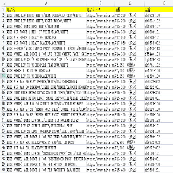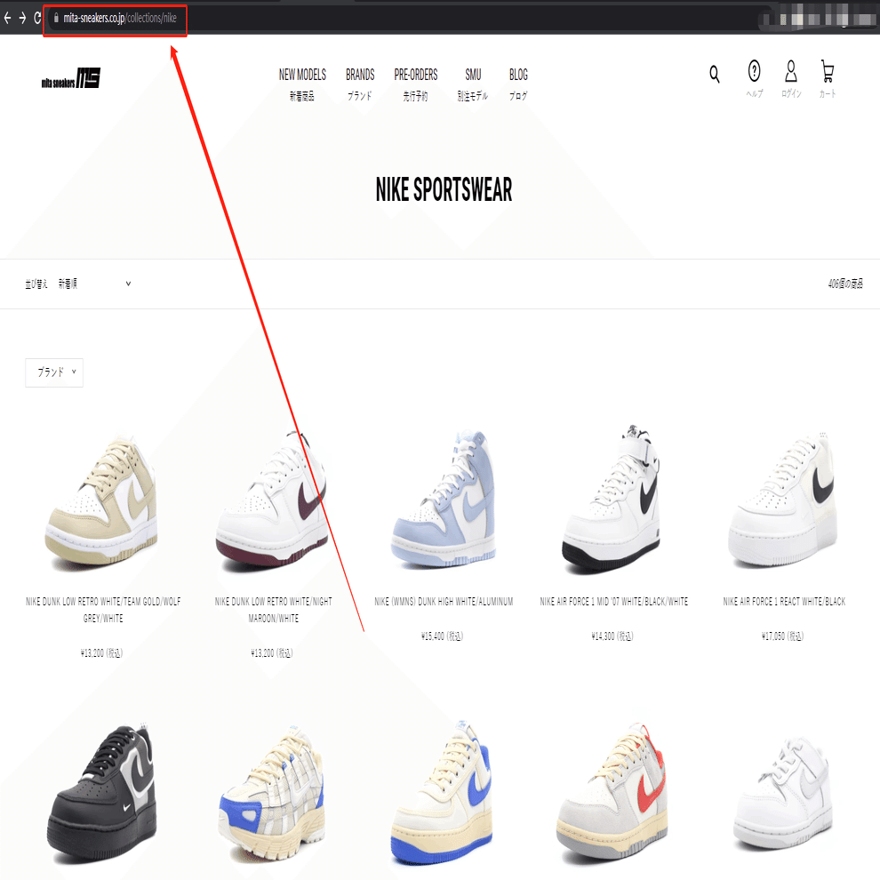通販サイト!ミタスニーカーズから商品の画像をスクレイピング