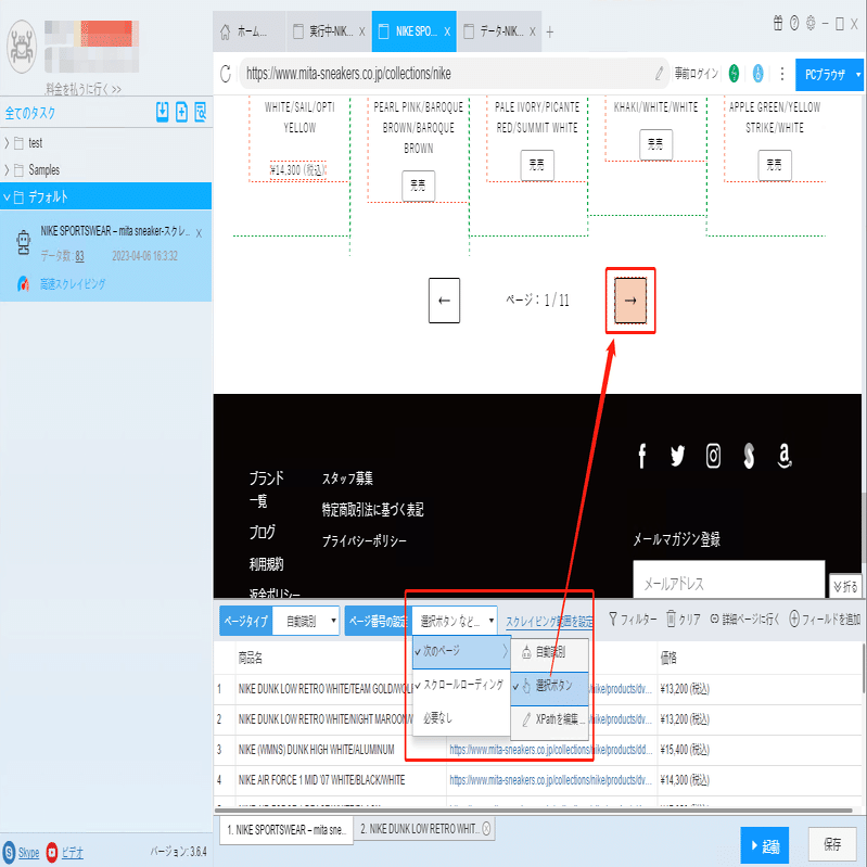 ScrapeStormは自動的にリスト要素とページボタンを識別できます。もし識別誤差が発生する時、手動でページボタンを選択してください。下記のチュートリアルも参照してください。