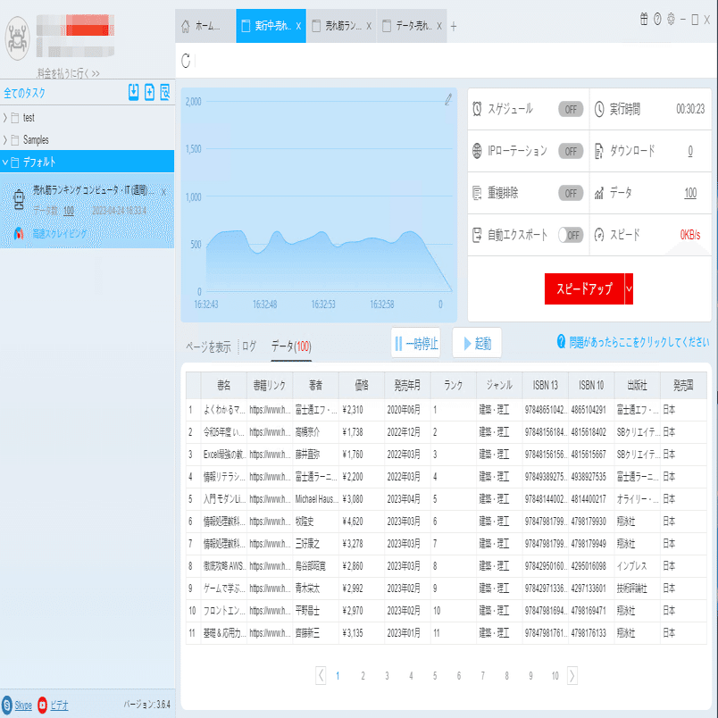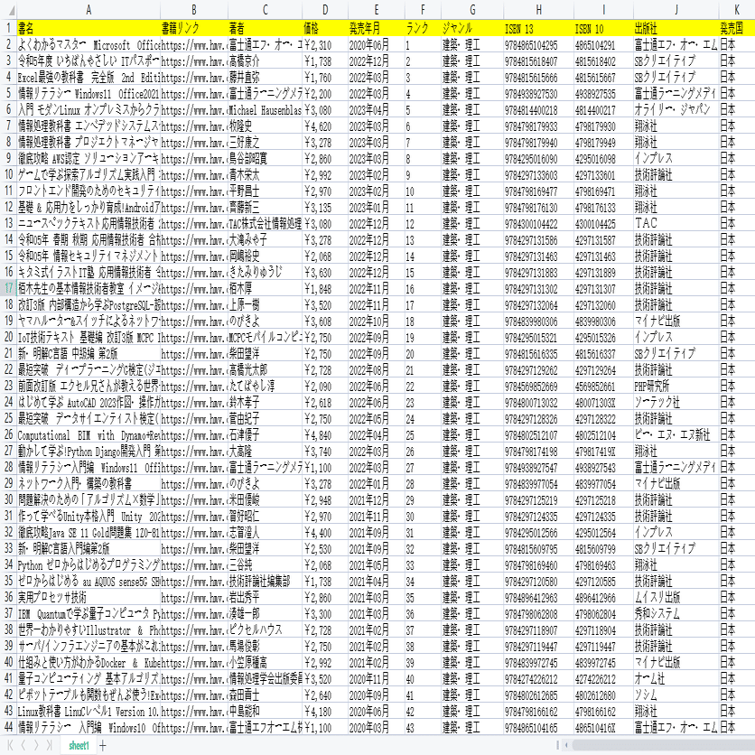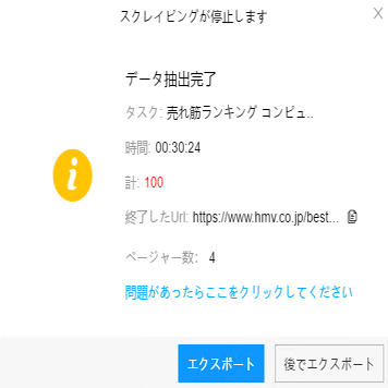 (2)しばらくすると、データがスクレイピングされる。
