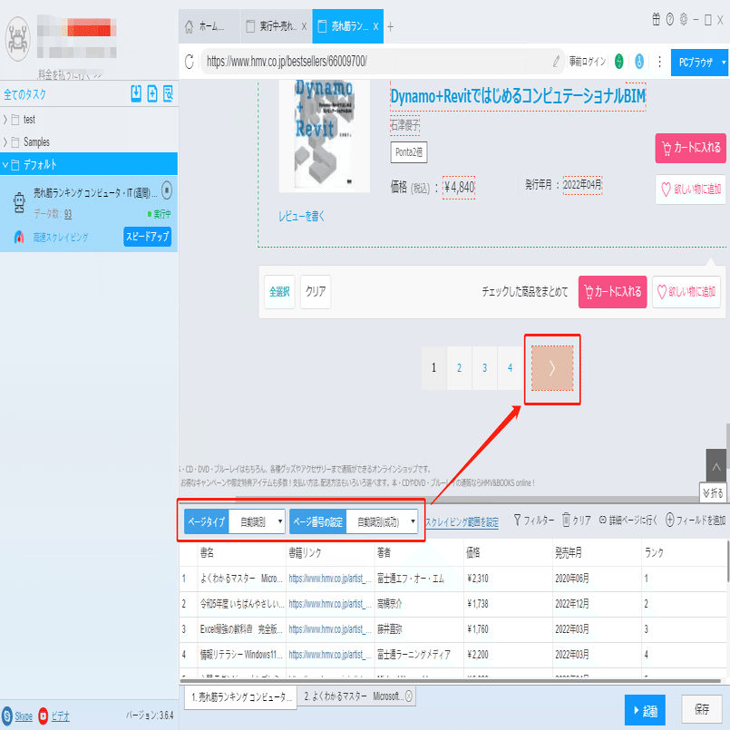 発売国、ISBNコード、出版社などの詳細情報は詳細ページに付いていますから、ソフトウェアの「詳細ページに行く」機能を利用して、データを抽出します。