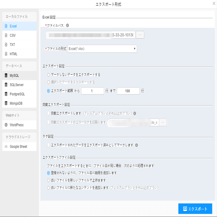 ScrapeStormは、Excel、csv、html、txt、データベース、ローカルなどさまざまなエクスポート方法を提供します。抽出結果のエクスポート方法の詳細には下記のチュートリアルをご参照ください。