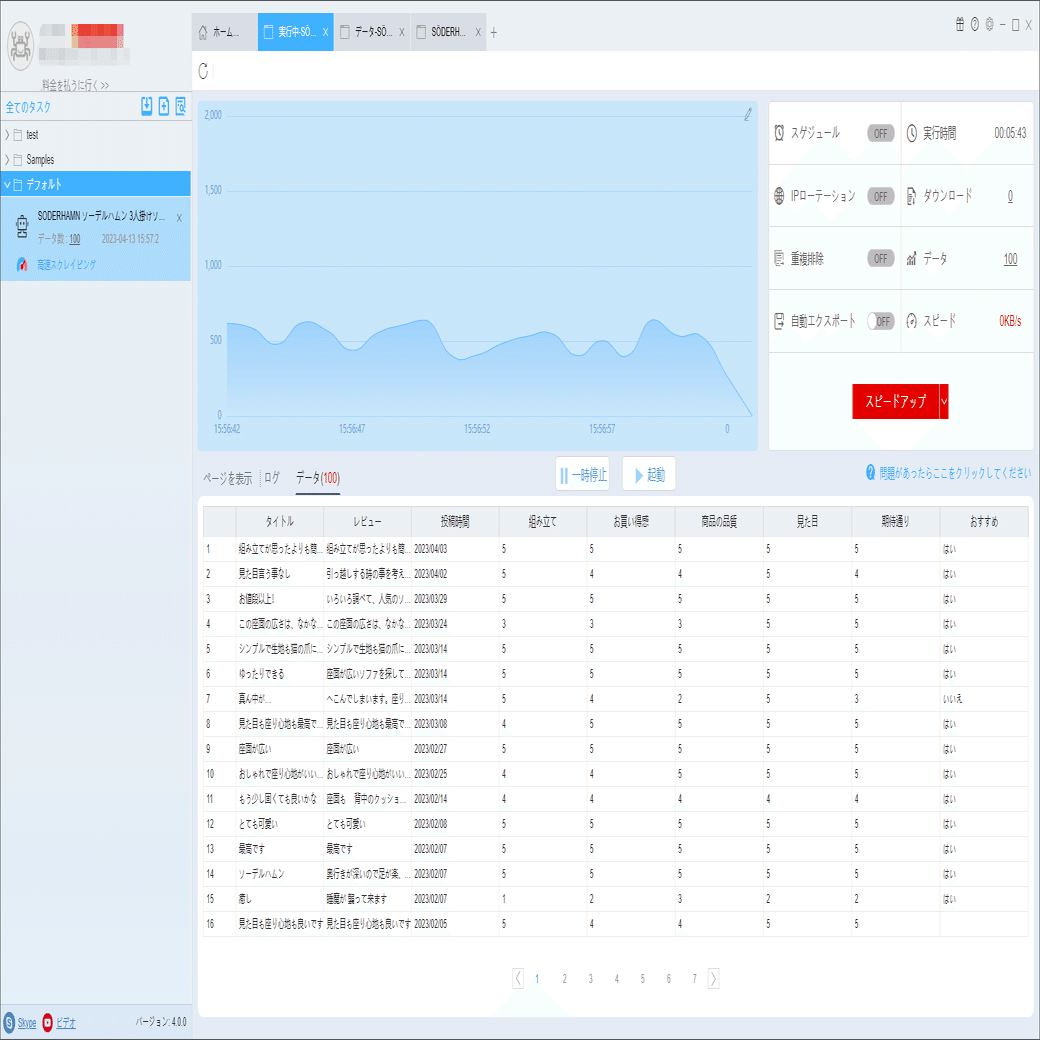 必要に応じて、スケジュール、アンチブロック、自動エクスポート、写真のダウンロード、スピードブーストを設定できます。サーバーに負荷しないように、遅延時間を設定してください。5秒以上を推薦します。スクレイピングタスクを配置する方法については、下記のチュートリアルをご参照ください。