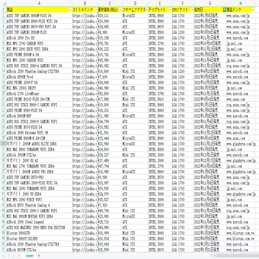 パソコン・自作PC!自作.comからパーツの情報をスクレイピング