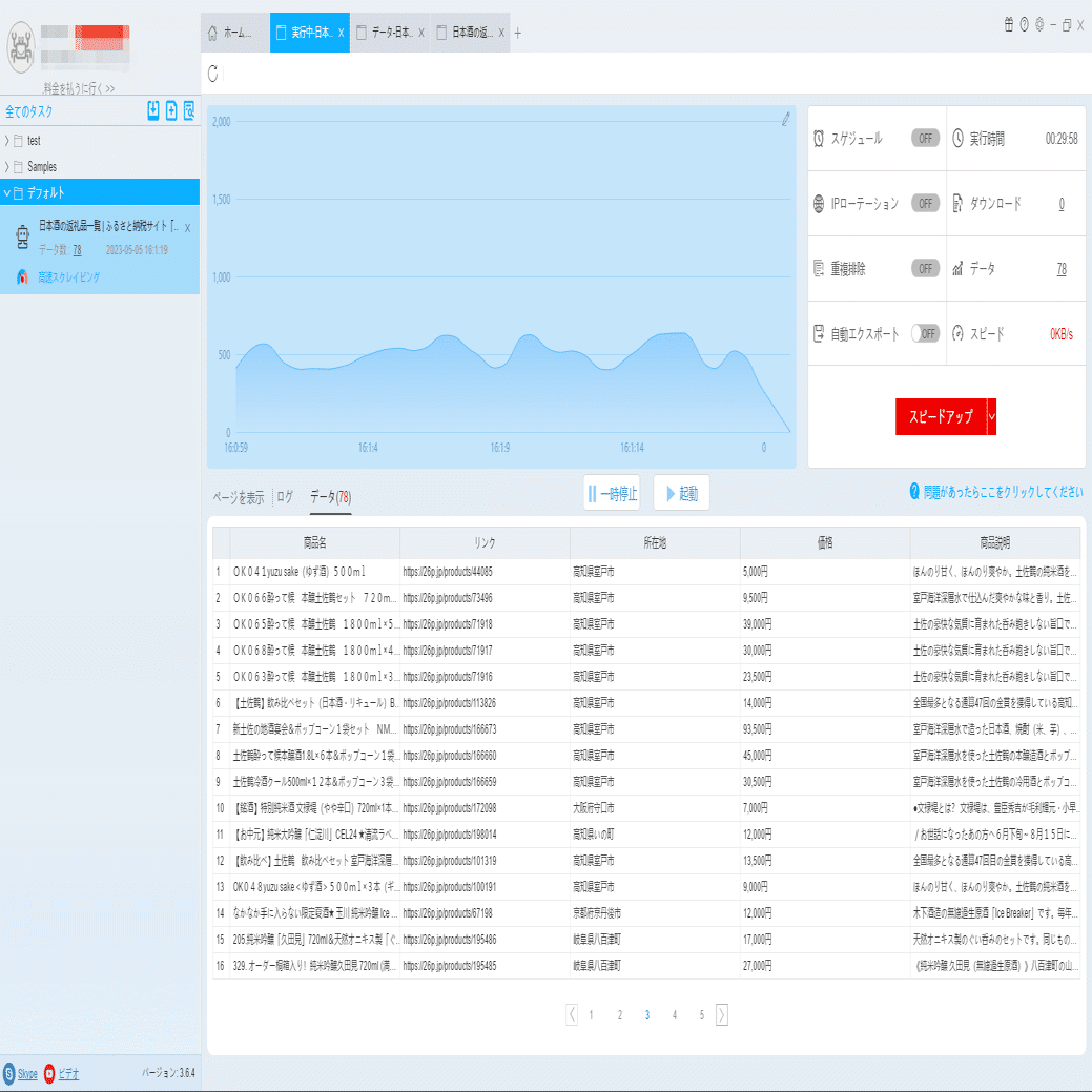 必要に応じて、スケジュール、アンチブロック、自動エクスポート、写真のダウンロード、スピードブーストを設定できます。サーバーに負荷しないように、遅延時間を設定してください。5秒以上を推薦します。スクレイピングタスクを配置する方法については、下記のチュートリアルをご参照ください。