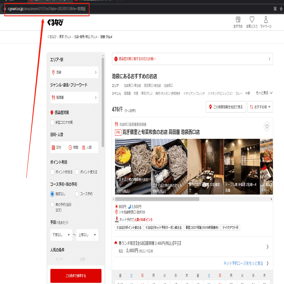 グルメ情報サイト!ぐるなびから飲食店の予約番号をスクレイピング