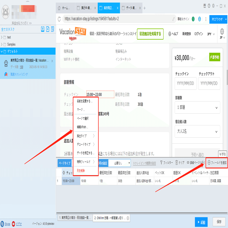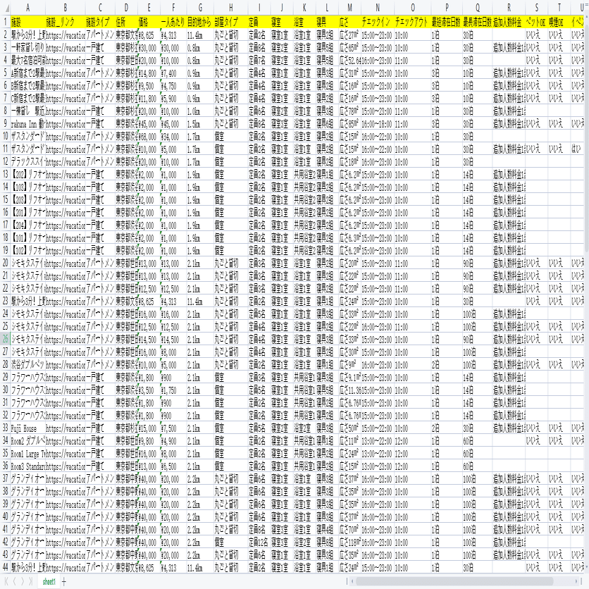 民宿!バケーションステイからホテルの情報をスクレイピングする