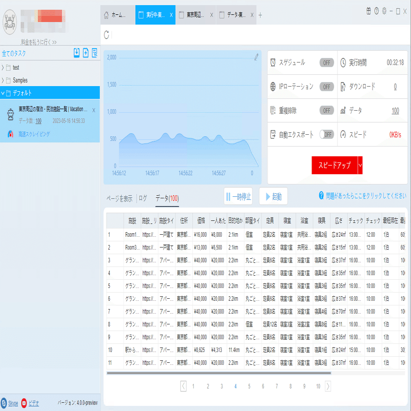 必要に応じて、スケジュール、アンチブロック、自動エクスポート、写真のダウンロード、スピードブーストを設定できます。サーバーに負荷しないように、遅延時間を設定してください。5秒以上を推薦します。スクレイピングタスクを配置する方法については、下記のチュートリアルをご参照ください。