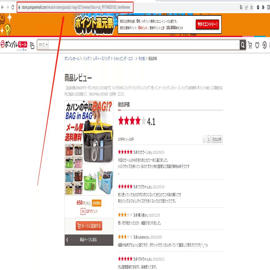 ネット通販!ポンパレモールの商品レビューをスクレイピングする