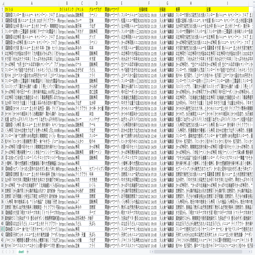 食生活!えん食べからグルメニュース記事をスクレイピングする
