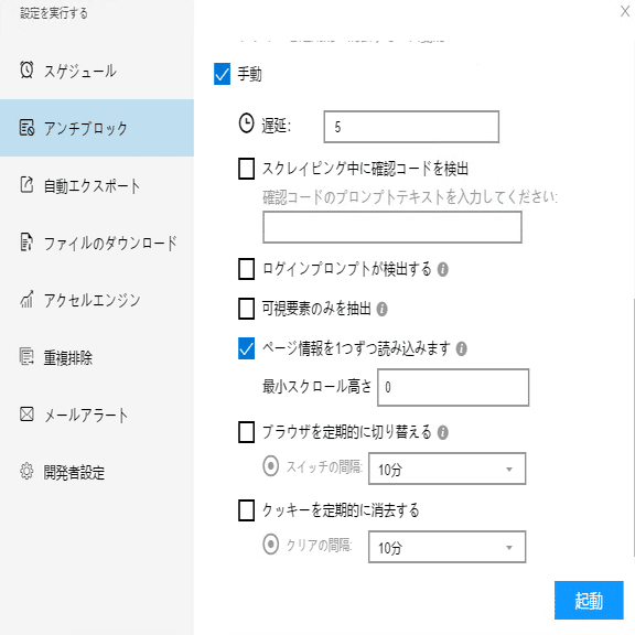 必要に応じて、スケジュール、アンチブロック、自動エクスポート、画像のダウンロード、スピードブーストを設定できます。今回は画像のダウンロードをチェックしてください。