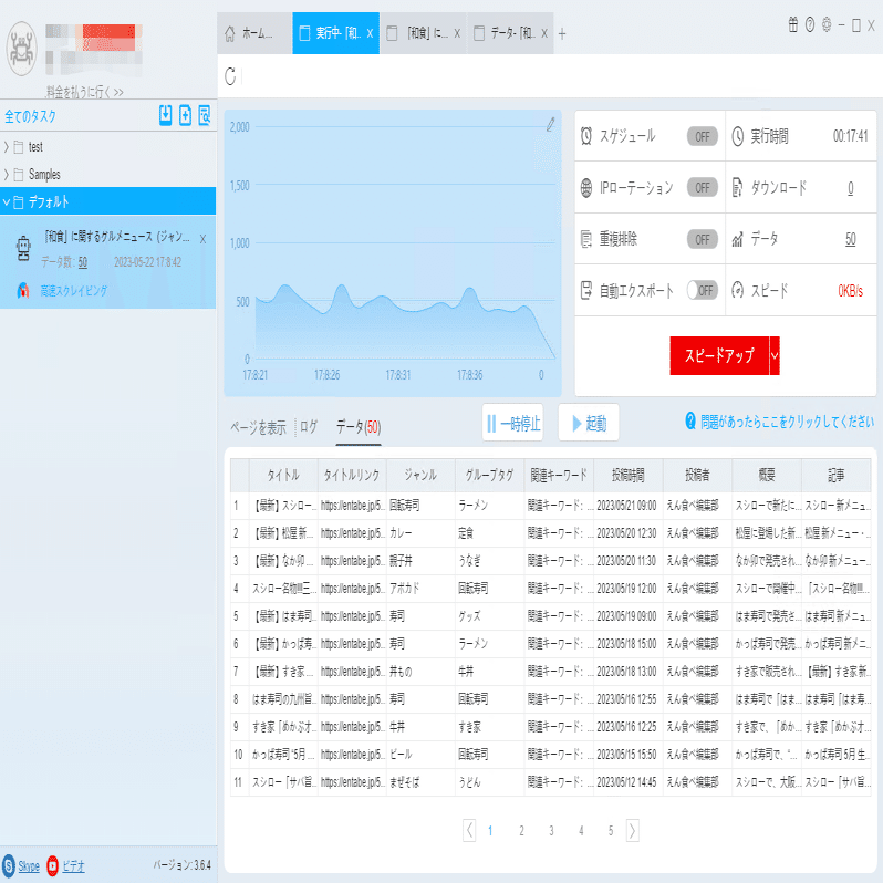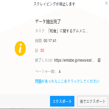 (2)しばらくすると、データがスクレイピングされる。