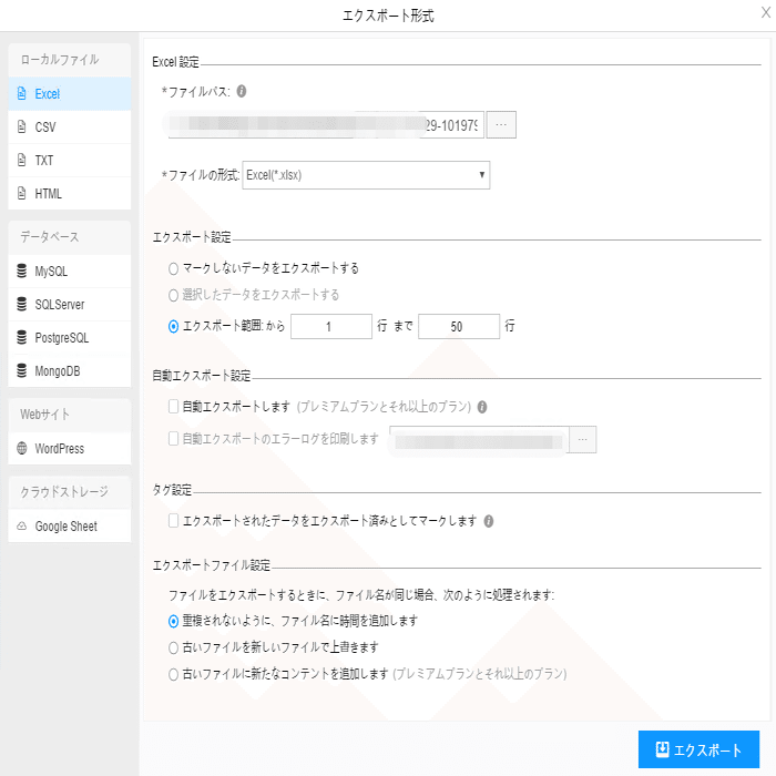 ScrapeStormは、Excel、csv、html、txt、データベース、ローカルなどさまざまなエクスポート方法を提供します。ライトプラン以上のユーザーは、WordPressに直接投稿することもできます。