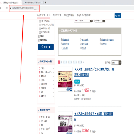 今回は風邪薬の検索結果ページを例として、スクレイピング方法を紹介します。まず、URLをコピーしてください。
