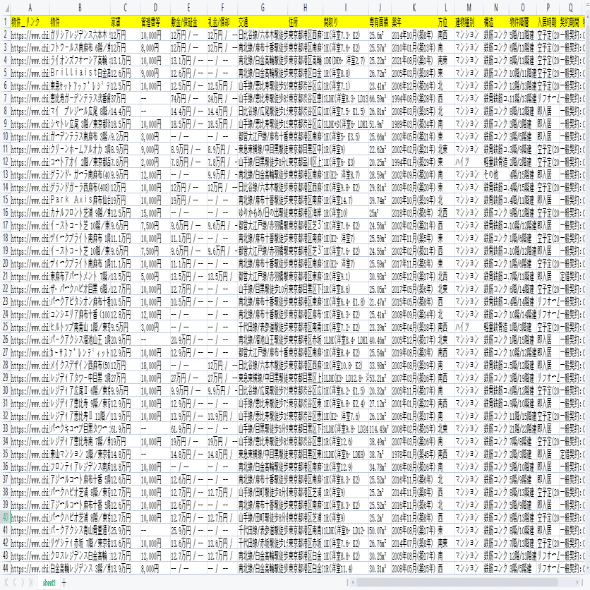 一人暮らし!CHINTAIから賃貸物件の情報をスクレイピングする
