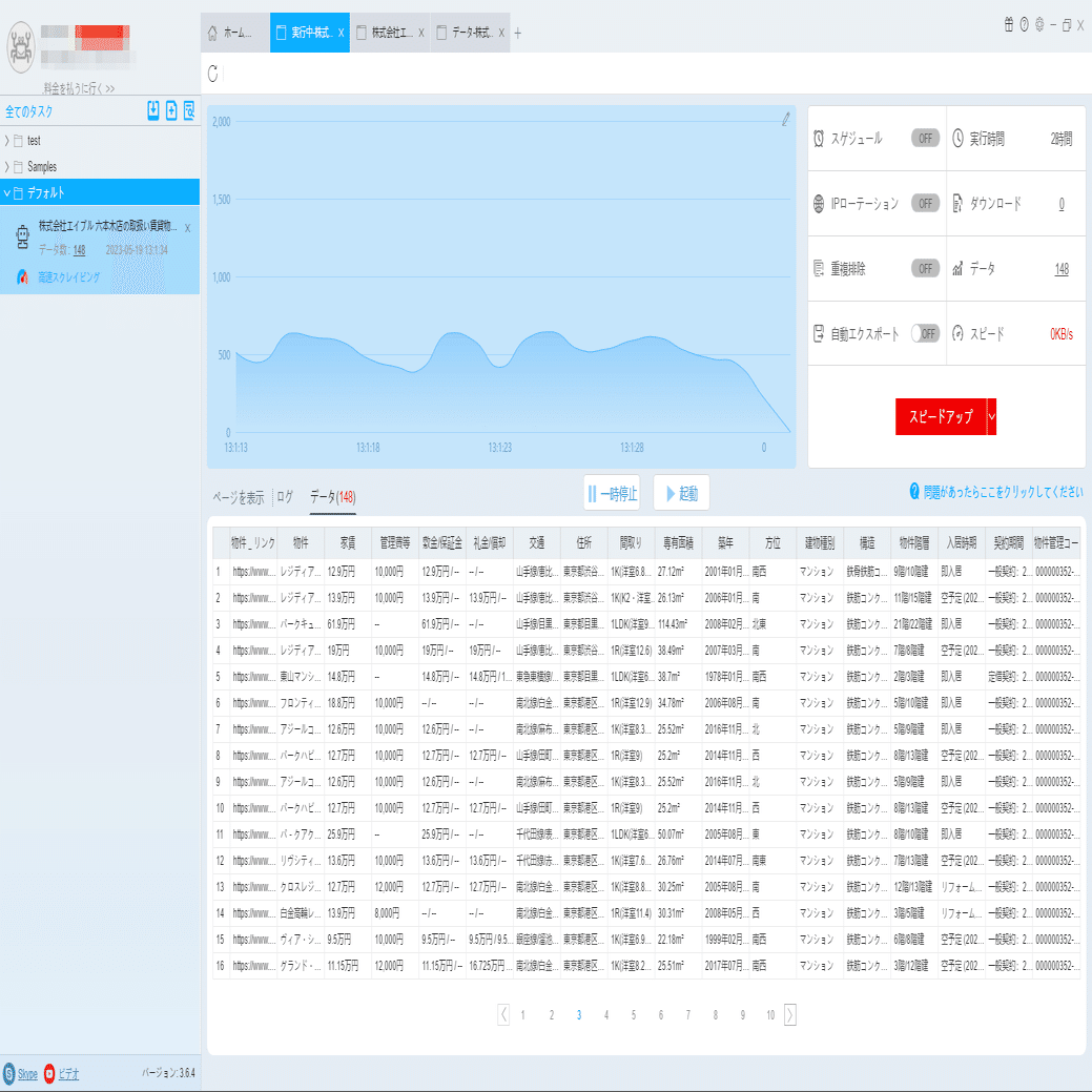 必要に応じて、スケジュール、アンチブロック、自動エクスポート、写真のダウンロード、スピードブーストを設定できます。サーバーに負荷しないように、遅延時間を設定してください。5秒以上を推薦します。スクレイピングタスクを配置する方法については、下記のチュートリアルをご参照ください。