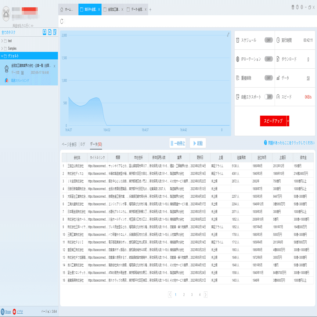 必要に応じて、スケジュール、アンチブロック、自動エクスポート、写真のダウンロード、スピードブーストを設定できます。サーバーに負荷しないように、遅延時間を設定してください。5秒以上を推薦します。スクレイピングタスクを配置する方法については、下記のチュートリアルをご参照ください。