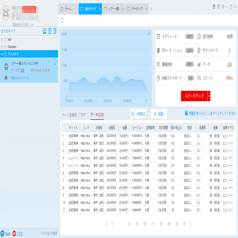 必要に応じて、スケジュール、アンチブロック、自動エクスポート、写真のダウンロード、スピードブーストを設定できます。サーバーに負荷しないように、遅延時間を設定してください。5秒以上を推薦します。スクレイピングタスクを配置する方法については、下記のチュートリアルをご参照ください。