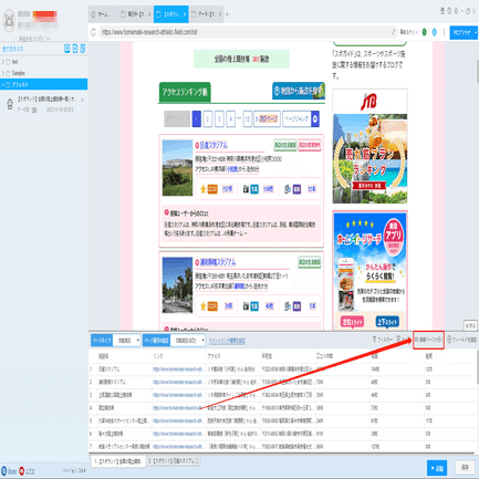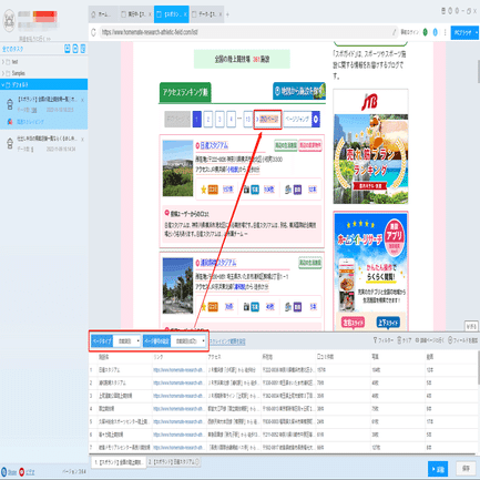 施設の詳細情報は詳細ページに付いていますから、ソフトウェアの「詳細ページに行く」機能を利用して、データを抽出します。