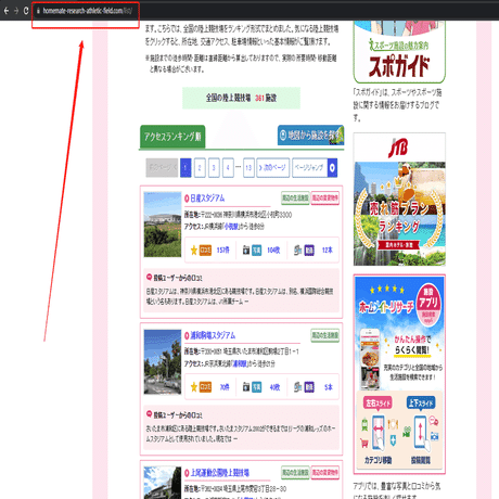今回は日本全国の陸上競技場一覧ページを例として、スクレイピング方法を紹介します。まず、URLをコピーしてください。