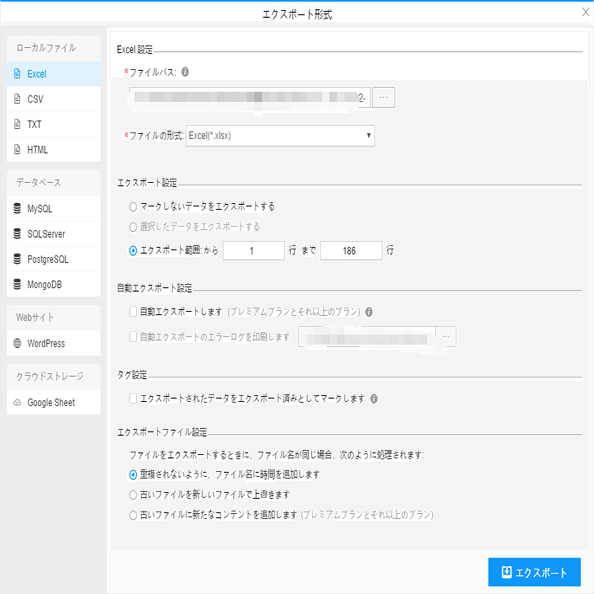 ScrapeStormは、Excel、csv、html、txt、データベース、ローカルなどさまざまなエクスポート方法を提供します。ライトプラン以上のユーザーは、WordPressに直接投稿することもできます。