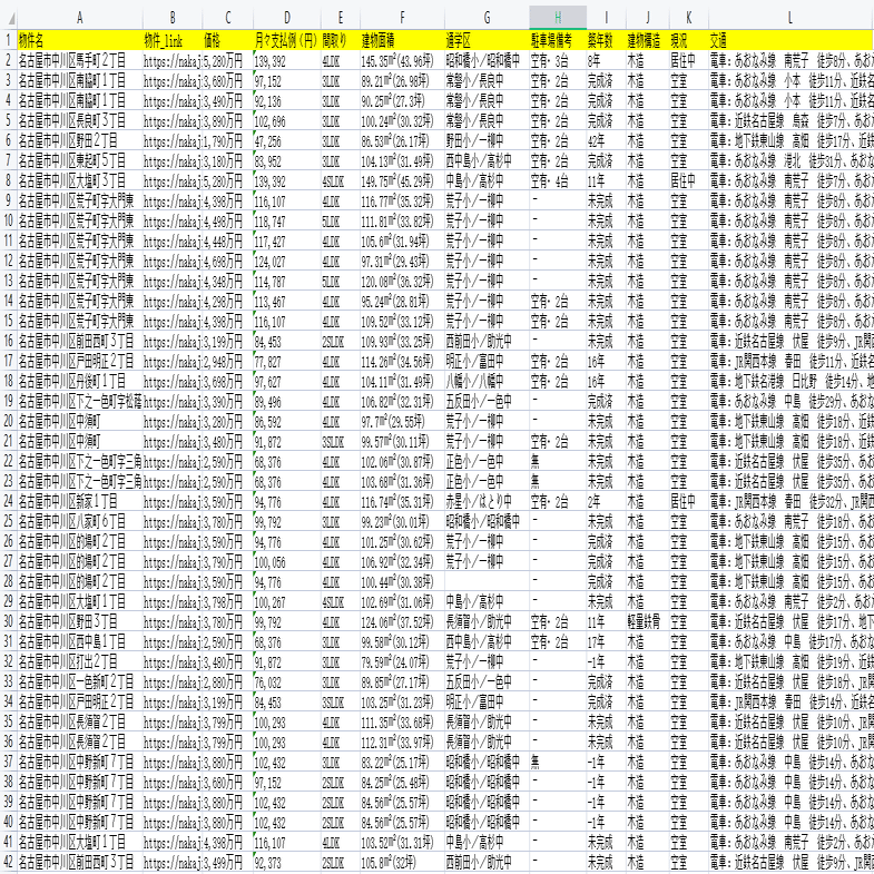 不動産・家探し!ナカジツから物件の情報をスクレイピングする