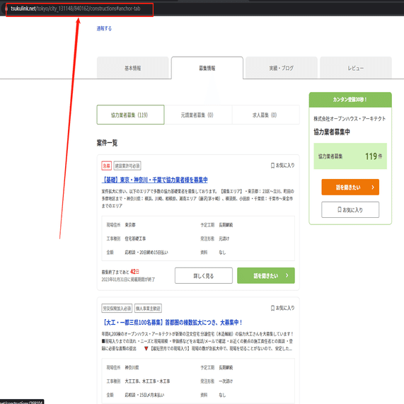 建築やリフォーム!ツクリンクから協力業者の募集情報をスクレイピング
