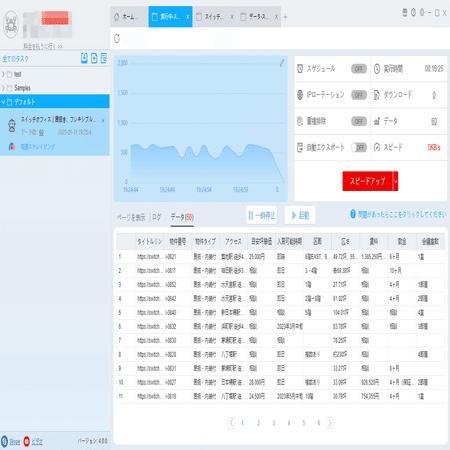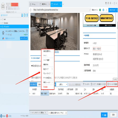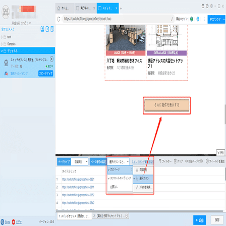 敷金、入居可能時期、区画などの詳細情報は詳細ページに付いていますから、ソフトウェアの「詳細ページに行く」機能を利用して、データを抽出します。
