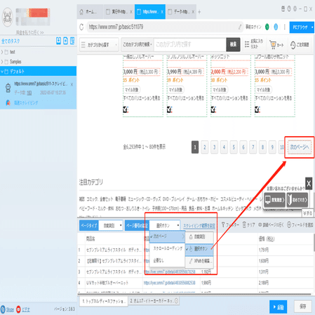 通常、ソフトウェアは自動的にリストとページボタンを識別しますが、もし識別誤差が発生する時、手動でやり直してください。下記のチュートリアルも参照してください。
