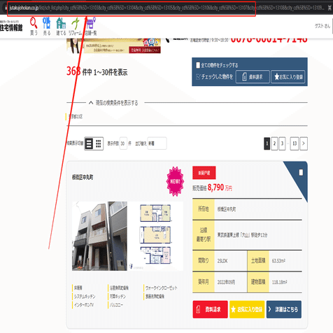 今回は東京都23区の一戸建ての検索結果一覧ページを例として、スクレイピング方法を紹介します。まず、URLをコピーしてください。