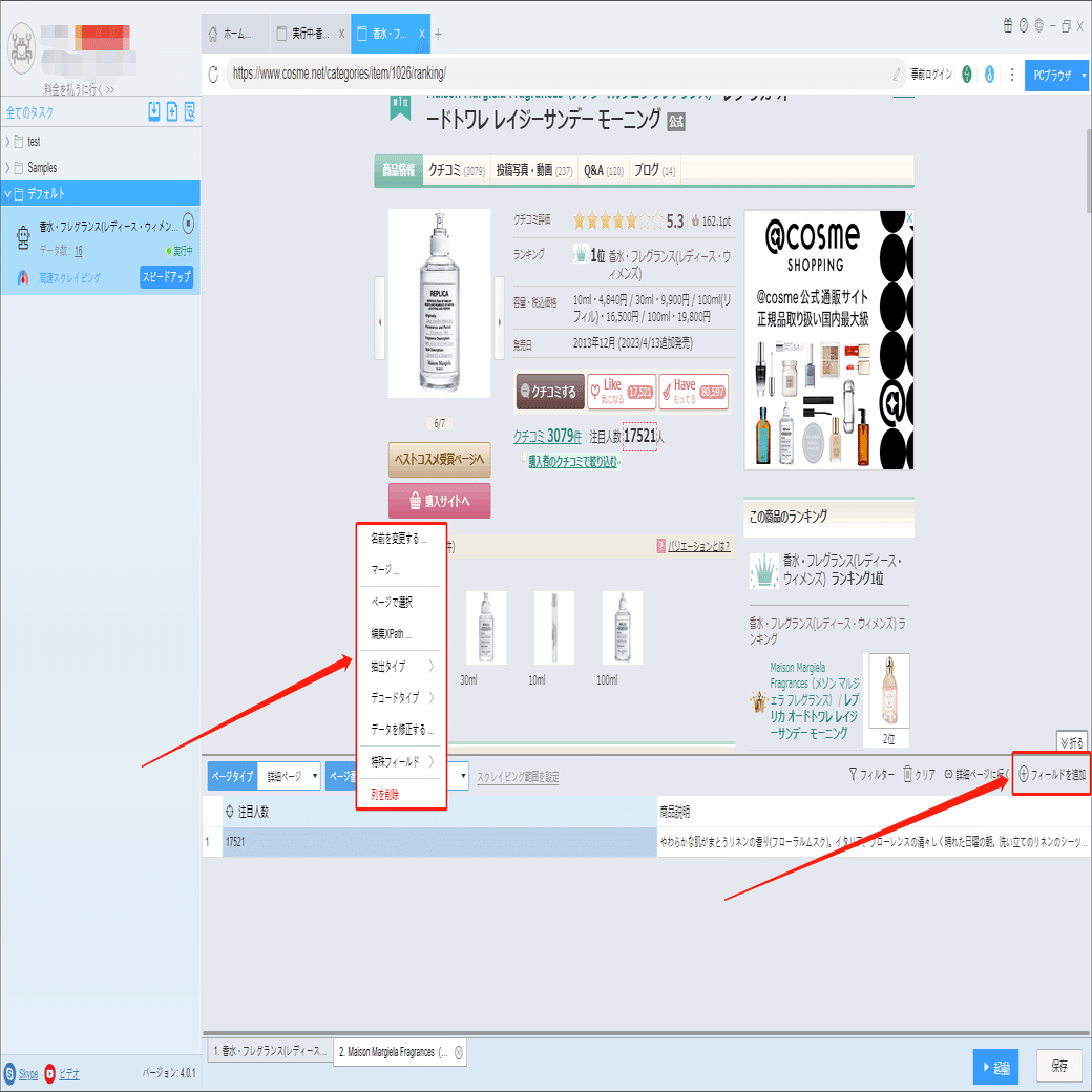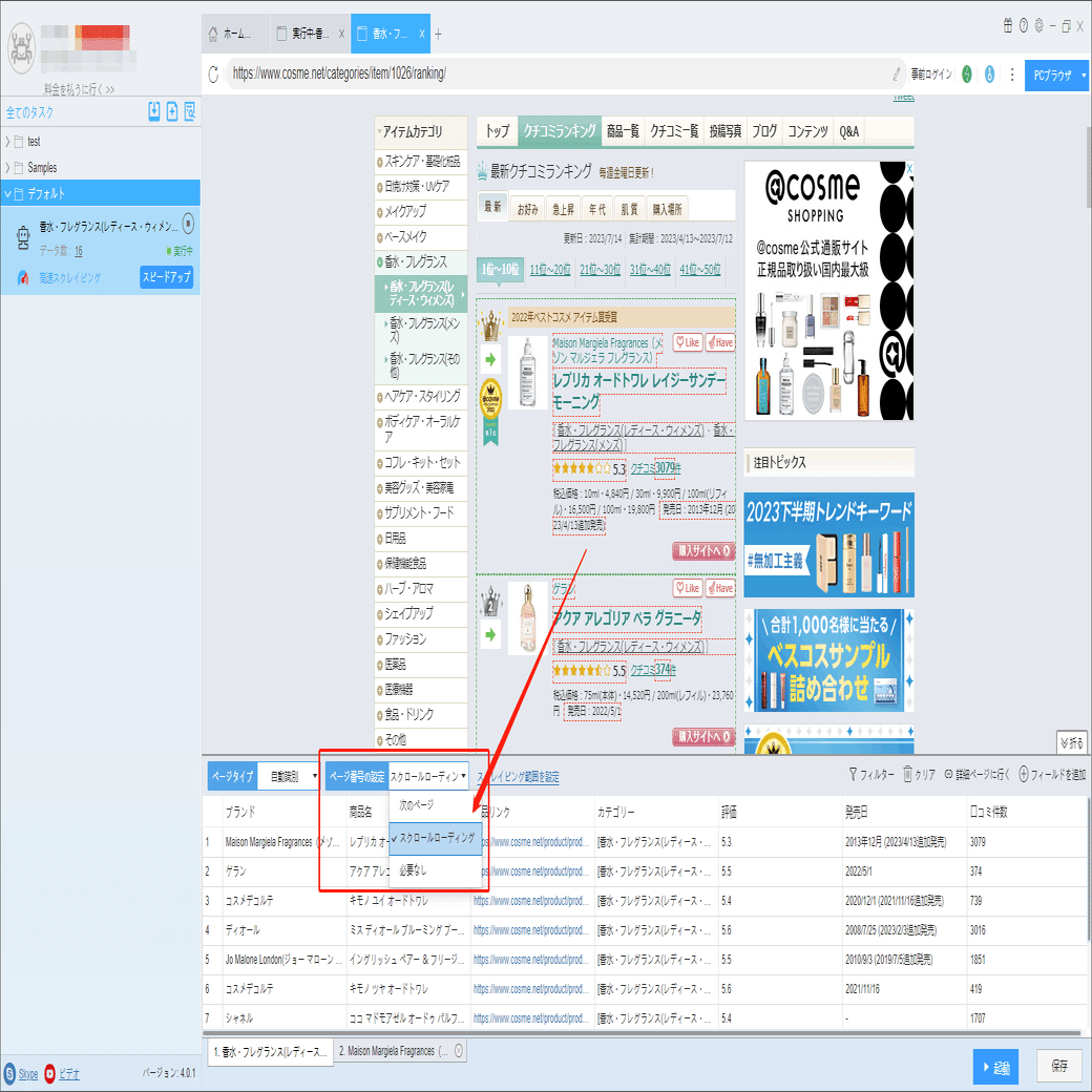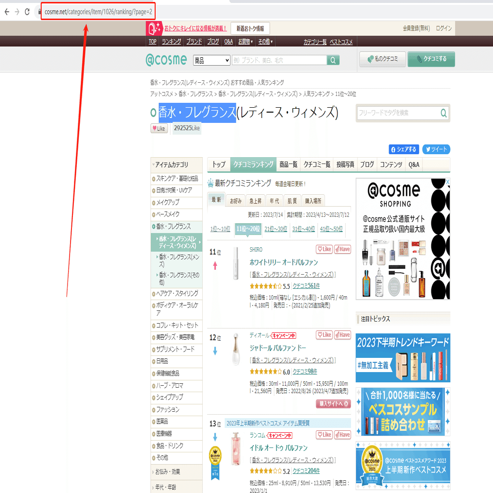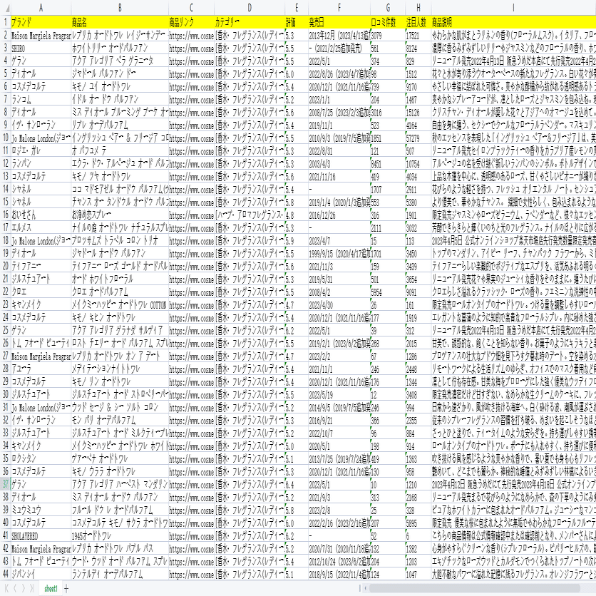 コスメ!アットコスメから人気ランキングの香水をスクレイピング