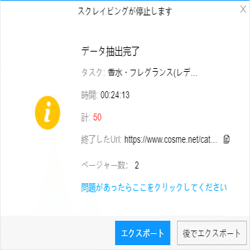 (2)しばらくすると、データがスクレイピングされる。